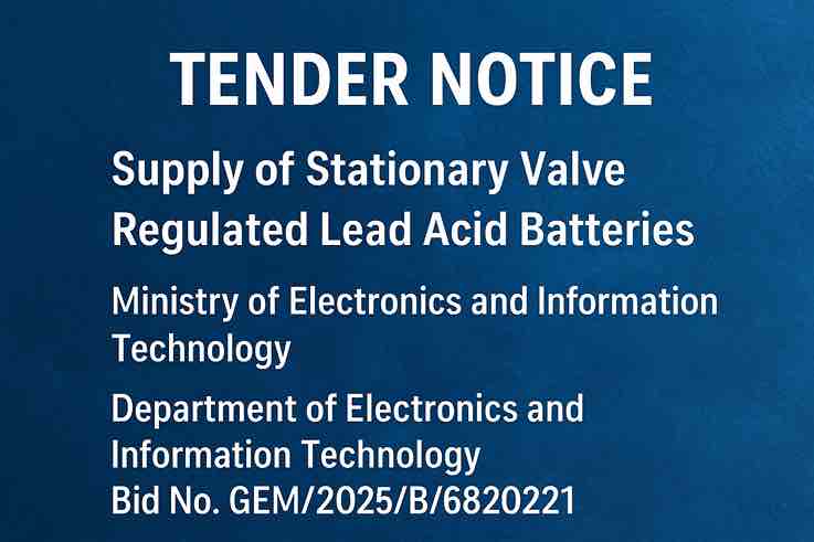 Tender Notice: Supply of Stationary Valve Regulated Lead Acid Batteries (VRLA) – Ministry of Electronics & IT