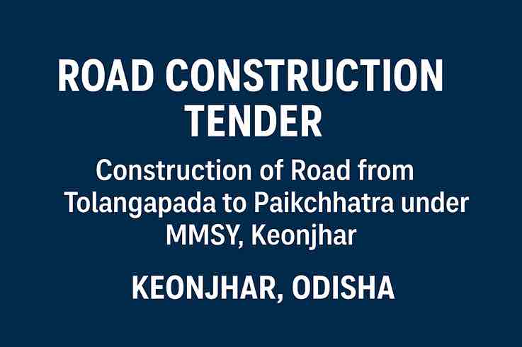 यह tender Construction of road from Tolangapada to Paikchhatra under MMSY (Mukhyamantri Sadak Yojana) के तहत जारी किया गया है। इस प्रोजेक्ट का उद्देश्य Keonjhar जिले में मौजूदा R.D. Roads का सुधार (Improvement to Existing R.D. Roads) करना है। Odisha Government Civil Tender 2025